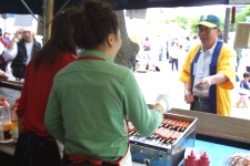 | 大衆食堂くったんでは人手が足りず、ばたばたしていました。一日中焼きそばを焼き続けた人もいたようです。他の企画で手のあいた人にはくったんにいってもらい、呼び込み、焼きそば詰めと、各自で判断して出来ることを手伝う、出来る事をする、というふうに、うまく人員のローテーションは組めたかな?と思っています。ただ、お天気だったのに売り上げはあまり良くなかったので、少し残念でした。 |