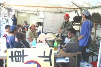 「天満天神繁昌亭」建設募金ブース 平成18年春完成を予定されている上方落語の定席小屋 『天満天神繁昌亭』の建設募金活動がスタート! という事で噺家さんも来られてのアピールを本部横で行いました。 出展団体 : 彦八まつり実行委員会(社団法人上方落語協会) |