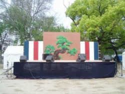 | 大地を揺るがす和ステージ。 午前の日替わりプログラムと邦楽アワー「響」、お客さんを巻き込み大地を揺るがす演舞の時間「鳴動・躍動・遊楽堂」の三部構成です。 |