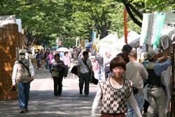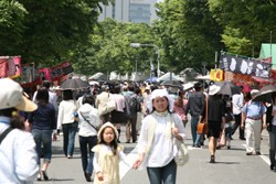 | 良いものを安く、安心してお買い物できる市民団体バザーや古本・古道具、縁日通りが盛りだくさん。 だんじり囃子でお祭り気分♪ |