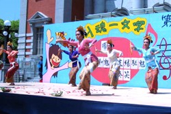 | 歌や踊りには、様々な思いや主張が表現されています。その様々な思いや主張を、より多く感じ取ってもらうために、回転の速い、次から次へと色々変化し、飛び出んばかりの勢いのあるバラエティーにとんだメインステージを目指しました。 | |||||||||||||||||||||||||