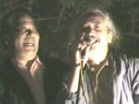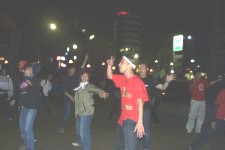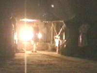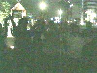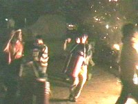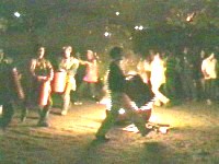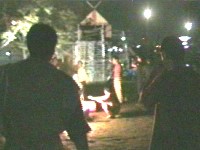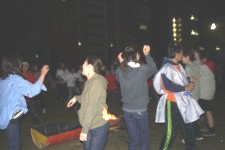 | 火矢によって点火された炎のまわりをドラム缶太鼓がねり歩き・・・ |