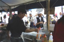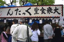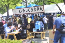 | 大衆食堂くったんでは人手が足りず、ばたばたしていました。一日中焼きそばを焼き続けた人もいたようです。他の企画で手のあいた人にはくったんにいってもらい、呼び込み、焼きそば詰めと、各自で判断して出来ることを手伝う、出来る事をする、というふうに、うまく人員のローテーションは組めたかな?と思っています。ただ、お天気だったのに売り上げはあまり良くなかったので、少し残念でした。 |