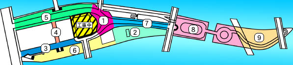 | 3.淀屋橋エリア 4.水晶橋エリア 5.大江橋エリア 6.栴檀木橋エリア 7.難波橋エリア 8.太鼓橋エリア 9.天神橋エリア |