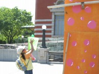| 手作りゲーム「ヘッドゲッター」 その名の通り、落ちてくるボールを頭でゲット!
