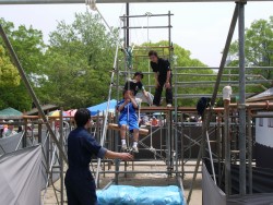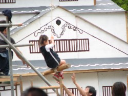 | 今回のテーマから私は去年の自分が、実行委員をやりたいという思いを持ったように、祭に当日手伝いに来てくれた人(種)が、祭に参加することで楽しいと思ってもらい(成長)、来年そういう思いを持って貰えるような空間を作りたいと思っていました。 ゾーンイメージは、和作り=輪作りということで、全体で和風な雰囲気の構成にしました。 御美地城をバッグに写真を撮る人、鍛錬場で遊ぶ子供たち、他では中々見られないプログラムに遊楽堂に集まる人、三日市で買い物を楽しむ人、和で買い物して一休みする人・・・どの企画も多くのお客さんに楽しんでもらえました。 当日直前まで、周りの皆さんから多くのバックアップをして頂いたにも関わらず不安だらけでした。しかし、祭中はスタッフの皆が、個々に積極的に動いてくれていたので心強かったです。 各企画ごとにそれぞれ何点かトラブルは発生しましたが、どれも大事には至らずホッとしています。撤収に関しても最後まで雨も降らず天気も持ってくれたので当日中に完了することができました。 反省点としては当日にあったトラブルはもちろんですが、「輪作り」という物が本当に達成されたのかどうかが疑問に感じています。 自身の余裕の無さ、無力さのためにそういう面で、おざなりになっていなかったが残念な部分と思っています。 今回の輪の中から来年の新人が生まれ、より大きな輪になっていけばうれしく思います。 「皆の衆、大義であった」・・・じゃなくて、本当にありがとうございましたm(._.)m |