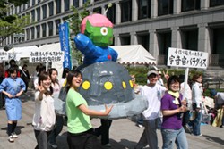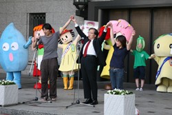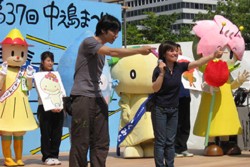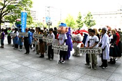 | 第37回中之島まつり開催はここから!キャラクターが、踊り子が、パフォーマンスが、中之島まつりに参加するそれら実行委員会の面々が!大阪市役所正面でのセレモニー「大阪がんばろう宣言」の後、吹奏楽の力強い演奏と共にメインステージに向かって行進します。これを見れば中之島まつりがわかる!?(3日9時30分より) | ||||||||||||