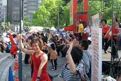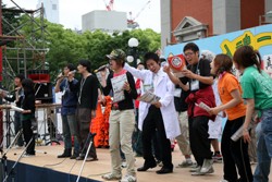 | 今年はたくさんの出演者をたくさん感じて(見て)もらおうと、平均出演時間を30分とし、26組もの方に出演頂きました。 「あなたの意見を宇音宙」の結果は、 3日「路上喫煙禁止区域を増やす?」の問いに対し、YES⇒69%、NO⇒31% 4日「ごみの分別回収をどんどんする?」の問いに対し、YES⇒62%、NO⇒38% 5日「18歳から大人とする?」の問いに対し、YES⇒67%、NO⇒33%という結果になりました。 参加して頂いた方ありがとうございました。 「入魂一文字」は、出演者が来場者に一番感じて欲しいことをインタビューで聞く事が出来ましたし、また、来場者も別の視点から演奏や踊りを見ることが出来たのではないかと思います。 最後に、メインステージスタッフから、5月5日まつり終了後に次のような事を聞きました。 「ステージを見てくれていたおばあちゃんが、中之島まつりは、ほんとに日本一のまつりですねっ!て言ってくれましたぁー」。 目を潤ませながら興奮した様子で伝えてくれたスタッフの気持ちが、印象的で嬉しかったです。 |