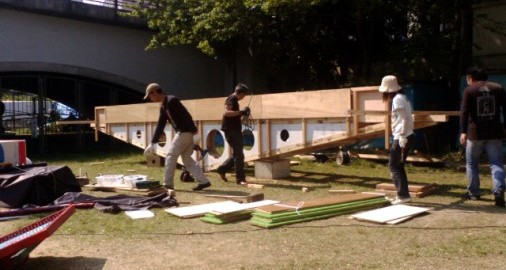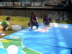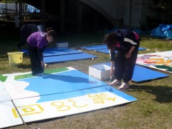 | メインステージのバックパネルを塗ってもらおう〜 |