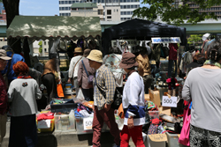 | 大阪市役所・府立中之島図書館・中央公会堂北側のストリート。 各種市民団体のブースや縁日通り、古本市、古道具市があります。 |